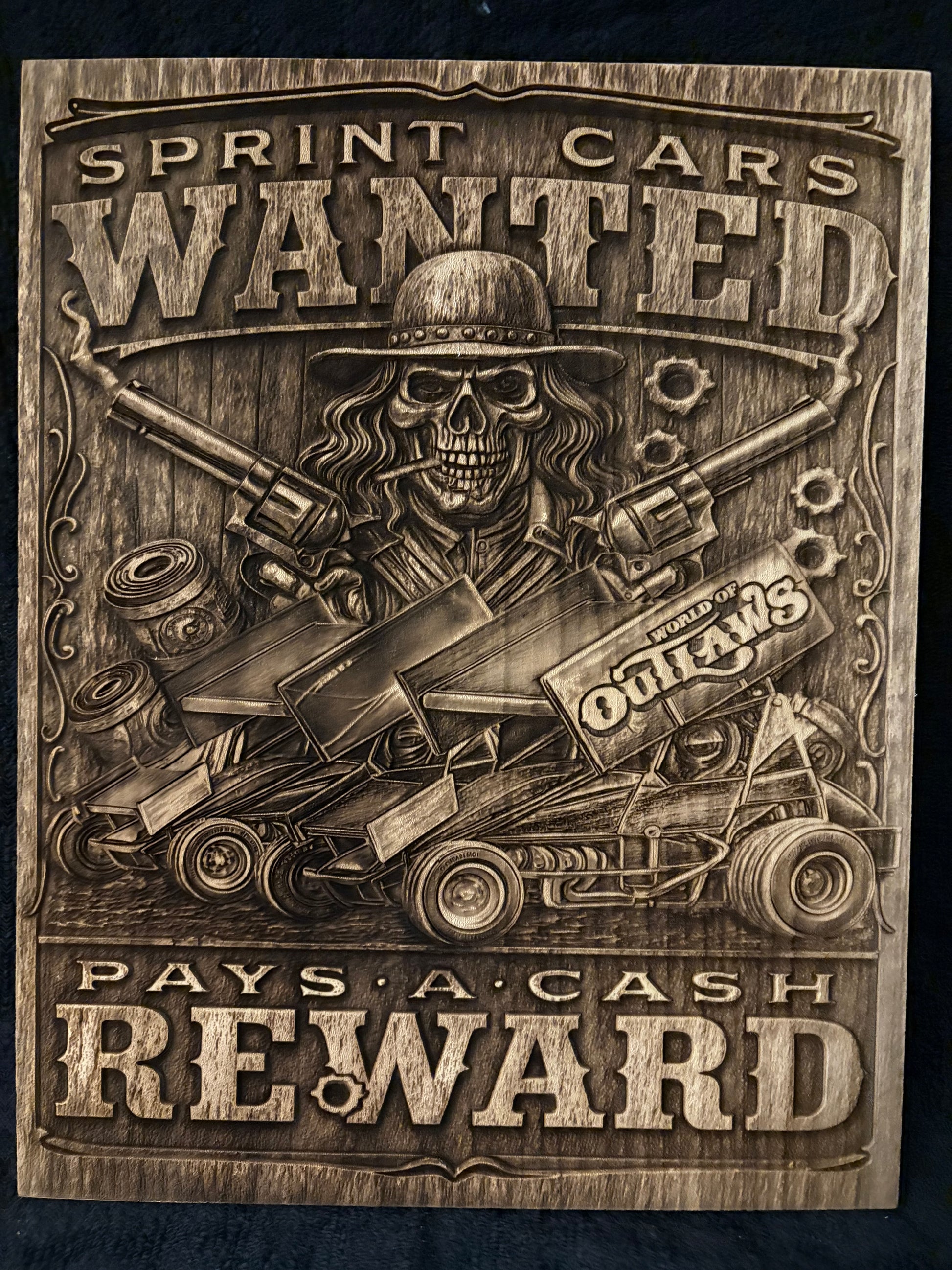 World Of Outlaws Sprint Car Wanted Logo Wood Collectible Sign